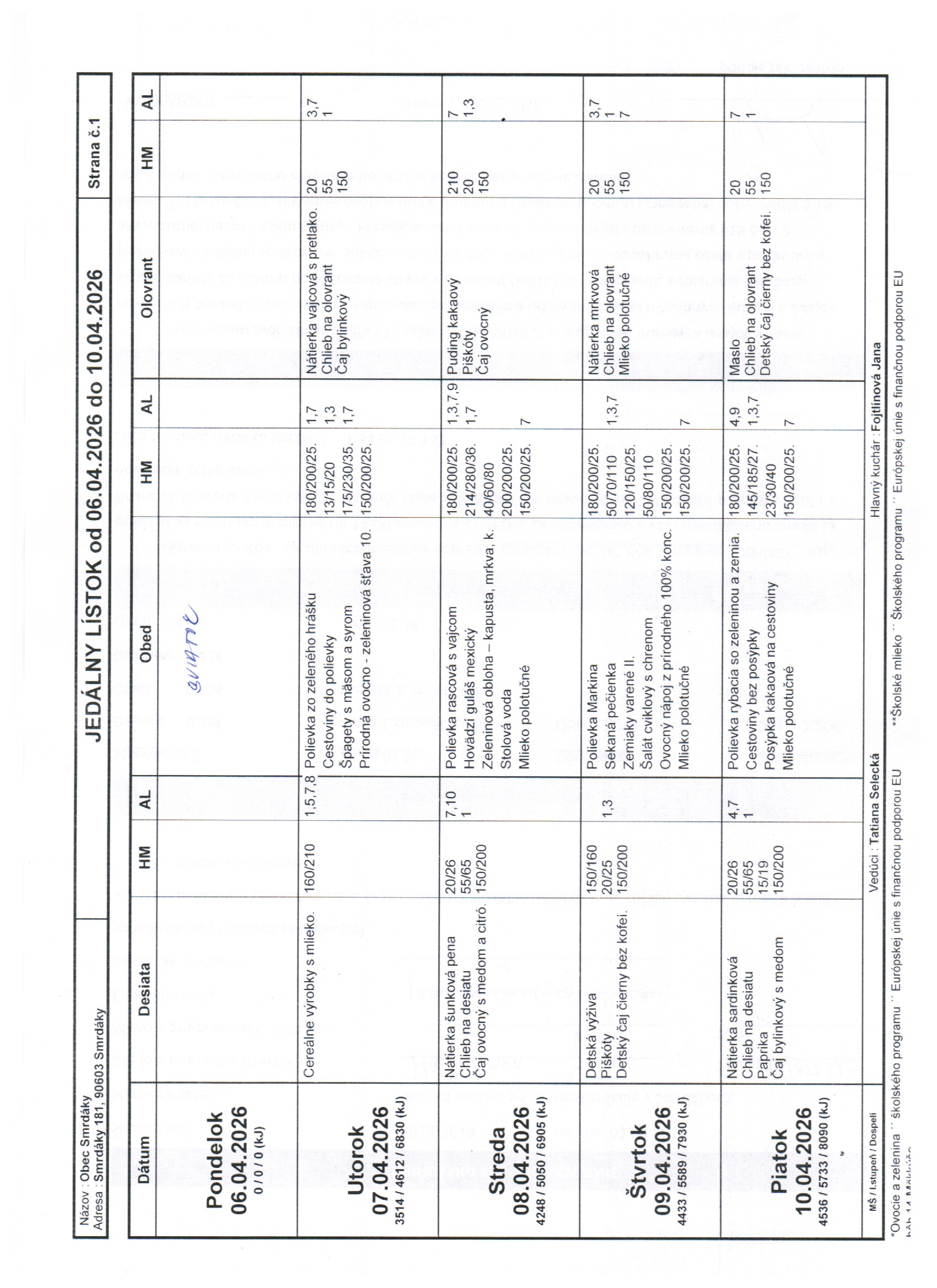 Vedúca školskej: Tatiana Selecká